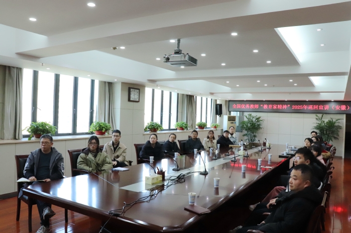 为深入贯彻落实习近平总书记关于大力弘扬教育家精神的重要指示,推进教育家精神铸魂强师行动,激励广大教师自觉践行教育家精神,凝聚投身教育强国建设的强大合力,教育部组织开展全国优秀教师代表“教育家精神”2025年巡回宣讲活动。2月27日下午,巡回宣讲团走进安徽举行宣讲报告会,我校在行政楼九楼西会议室设分会场,组织师生通过网络集中观看。